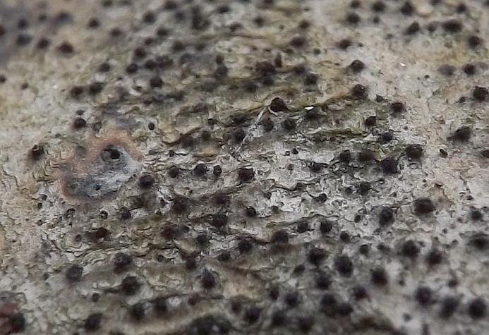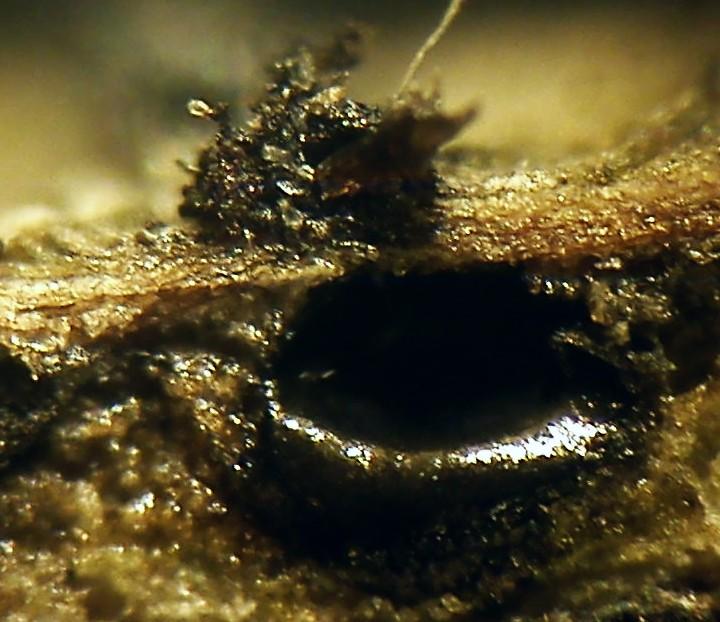 From the photos, this species seems fungicolous. Could you make a vertical section through a perithetical stroma and wood to see if there is a fungus host?