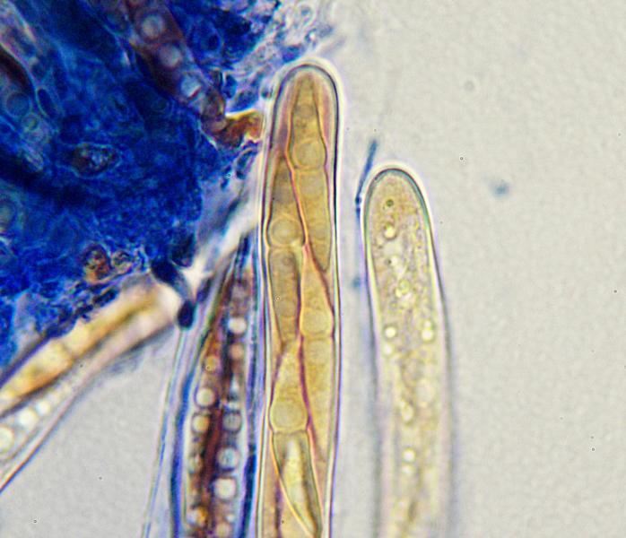Spores: 25 - 27 x 6 - 7 µ with mucous membrane.