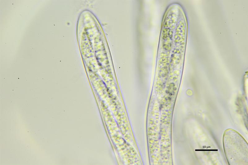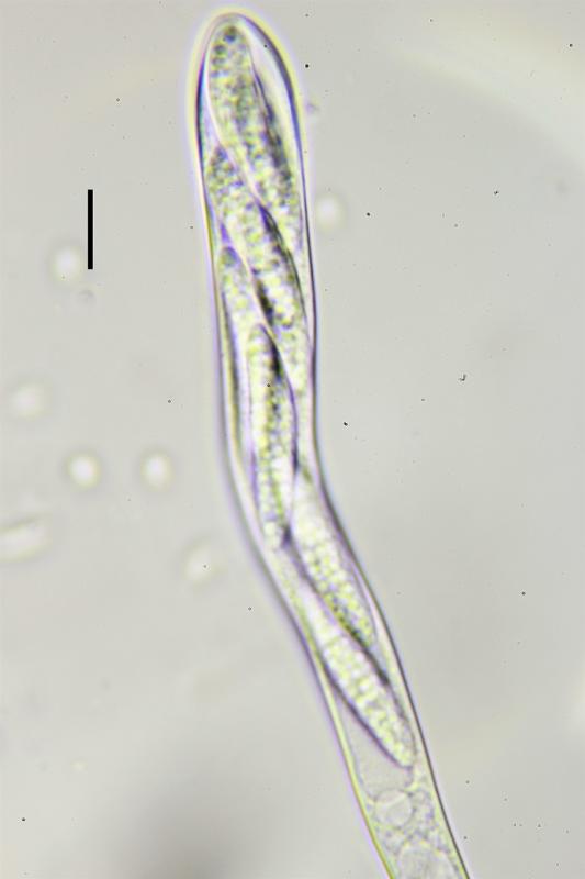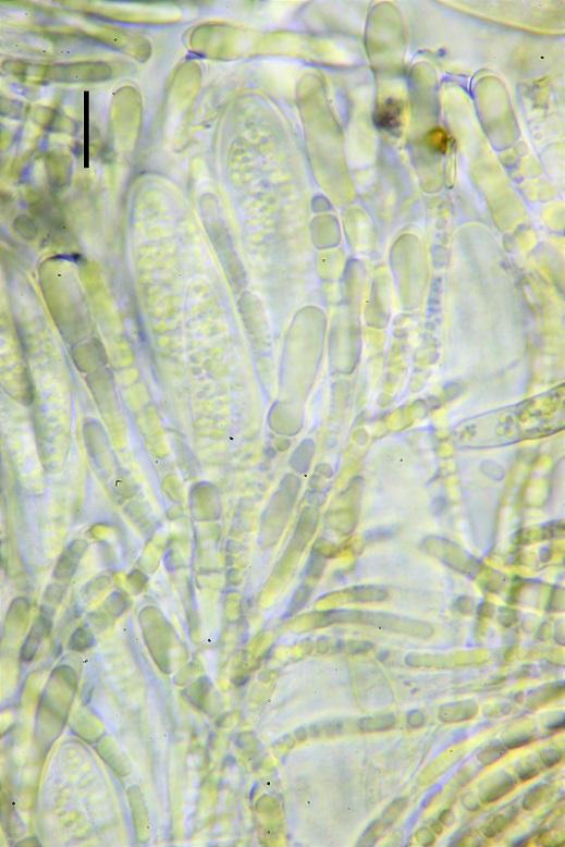 Tiene cierto parecido con especies del genero Patellariopsis, pero aquí el ápice del asca es claramente amiloide, no tengo ninguna idea más....