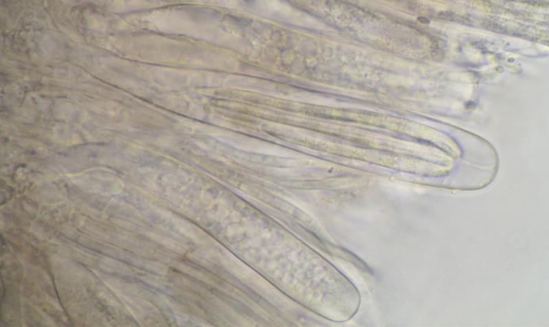 Asques : 85-103 x 10-14 µm, claviformes, ne réagissant pas à IKI, contenant huit spores réunies en faisceaux.