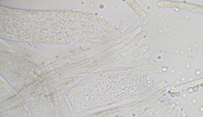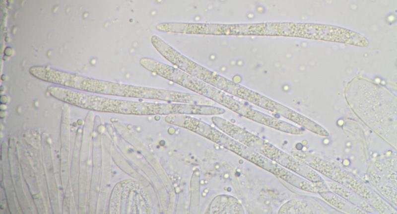 Ascospores : 44-67 x 2,8-4,6 µm, cylindriques, très allongées, hyalines, guttulées, lisses.