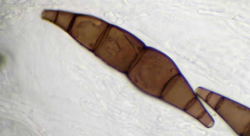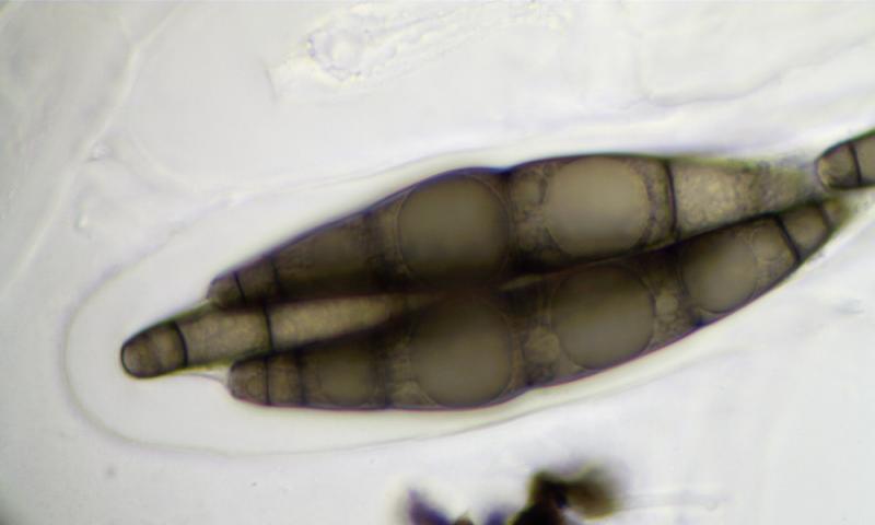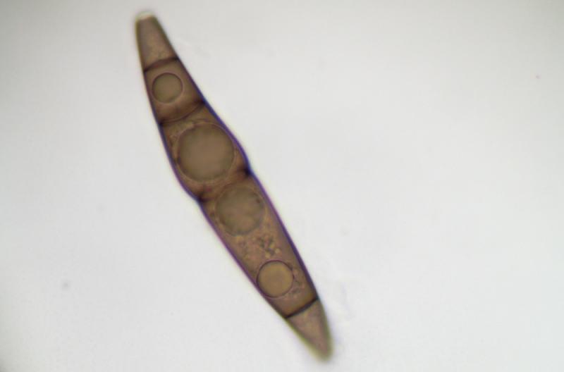 Ascospores : 86-96 x 15-20 µm, brunes, guttulées, avec 7 cloisons, lisses.