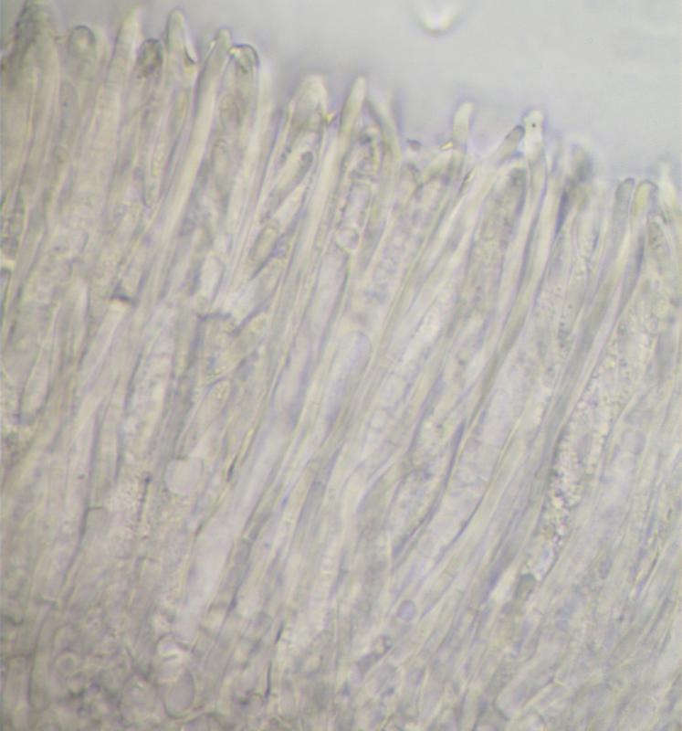 Paraphyses : dressées, grêles, non ou peu renflées au sommet (2-2,6 µm), hyalines, bassement septées.
