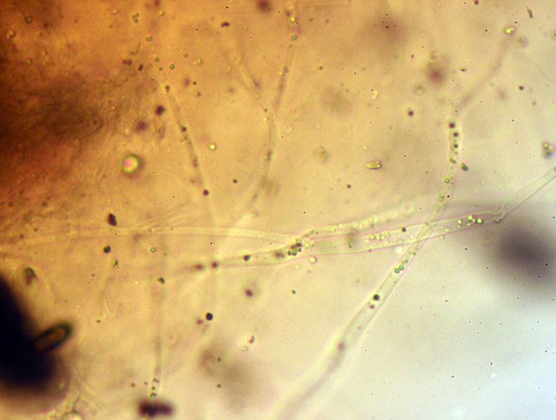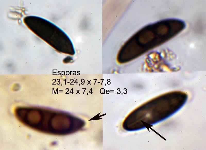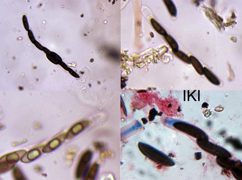 Hola Joseba, no entiendo mucho de estas, en estos casos es muy importante la medida del dispositivo apical, aun así con este subículo tan presente y estas medidas esporales, aunque no aprecio bien la vaina viscosa que debería estar presente alrededor de toda la espora, la mas parecida que conozco es la Rosellinia corticium, en el sentido mas ámplio de la misma.