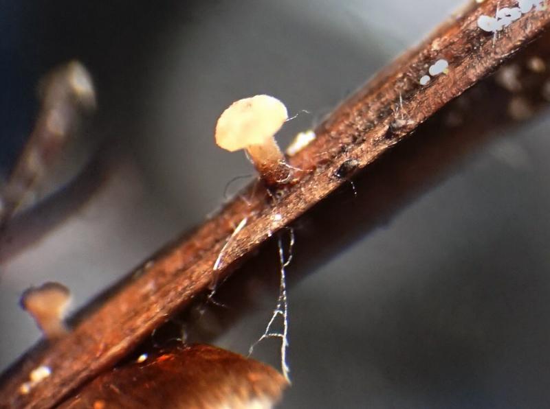 Fruitbody: on dead needles (Larix decidua) ... + small white anamorph?
