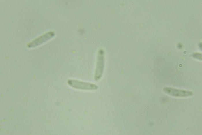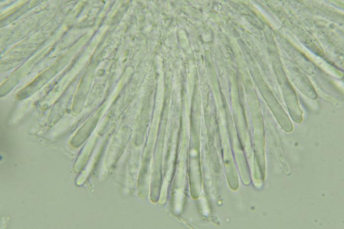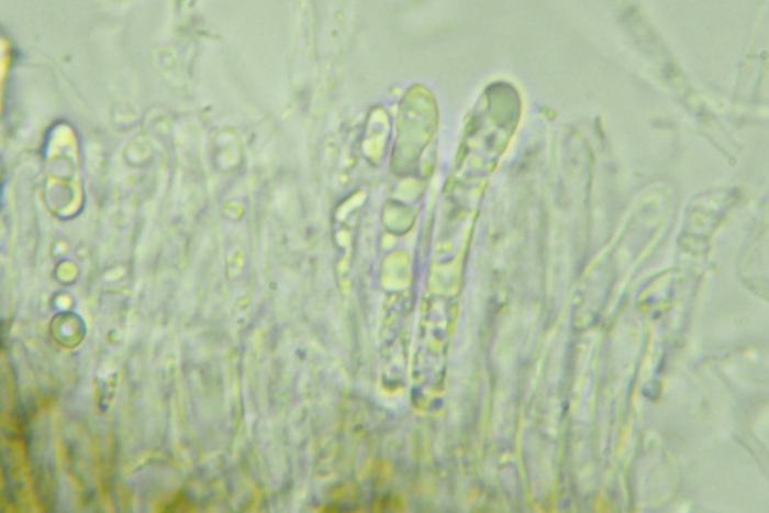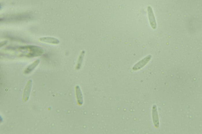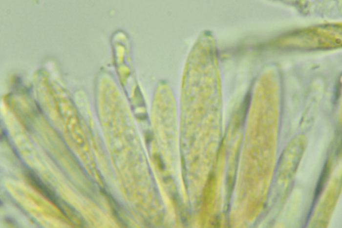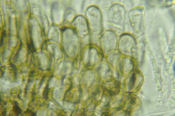 This one was growing on a dead Polygonatum odoratum stem. There were both pale and black apos on the same stem and I think both are of the same species. The dark one's spores were slightly narrower and the oil content seemed to be a bit higher but no big difference. Both gave a vivid yellow KOH reaction.