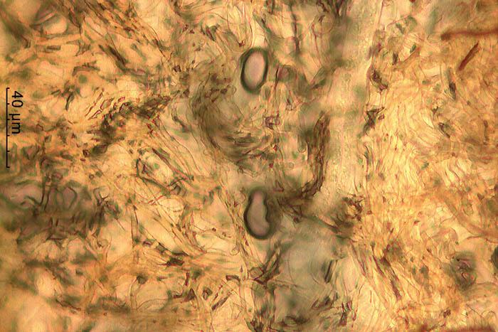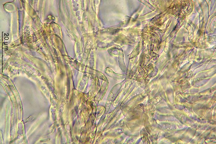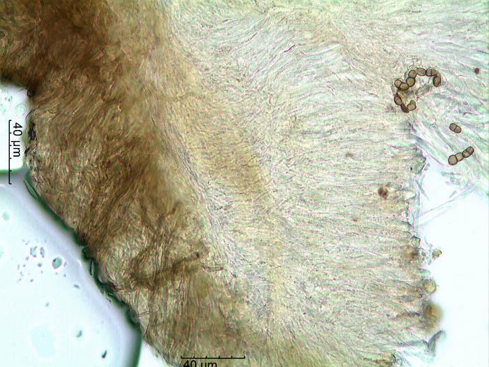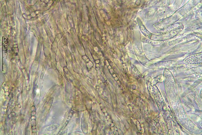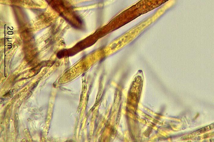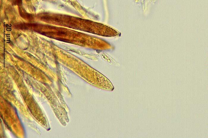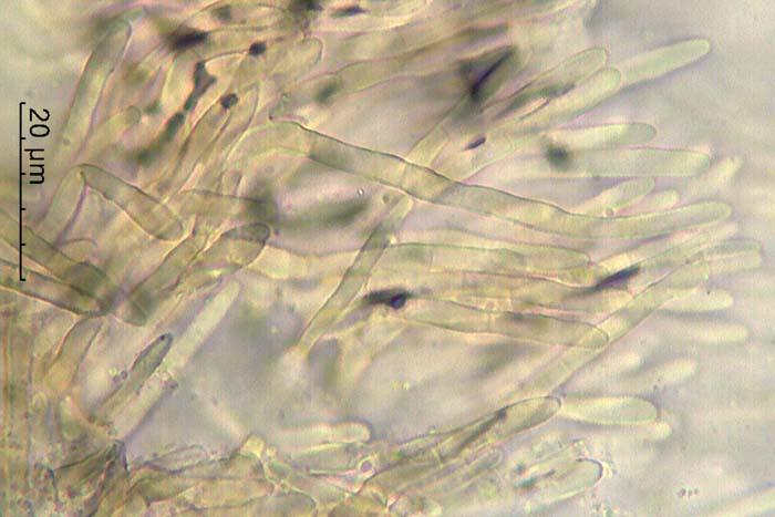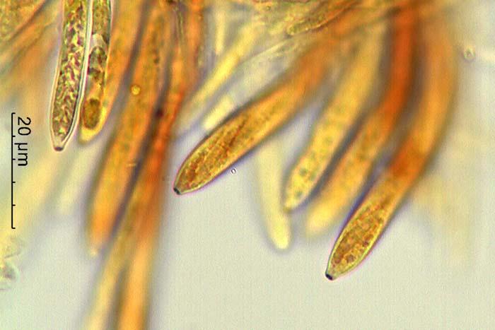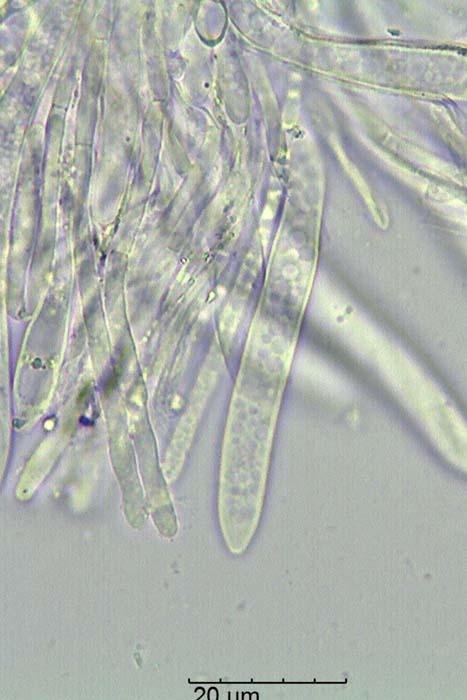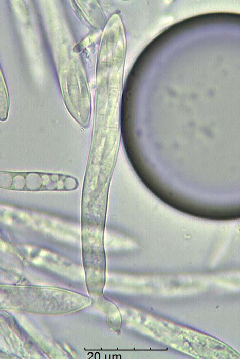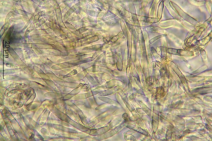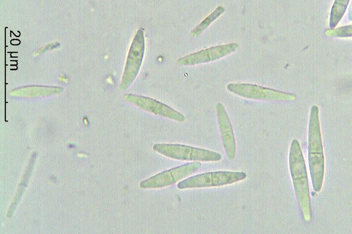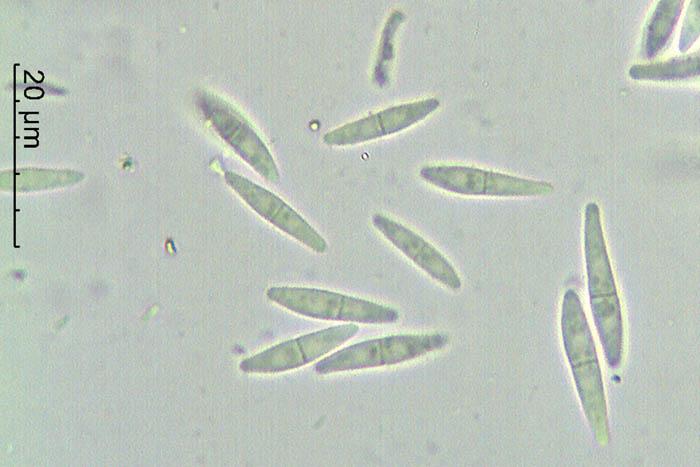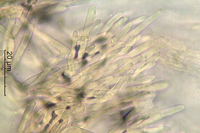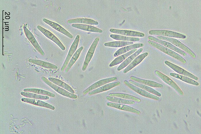 Esporas de 13-25 x 2,7-3,1 micras con 1 septo trasversal.