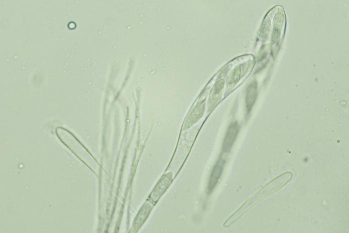 The microscopy looks rather distinctive. Paraphyses thin and cylindrical, plenty of crystals in the excipulum. I measured a couple free spores and they were around 35 x 10 microns.