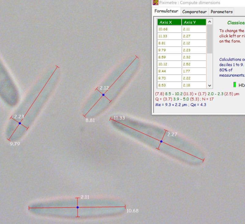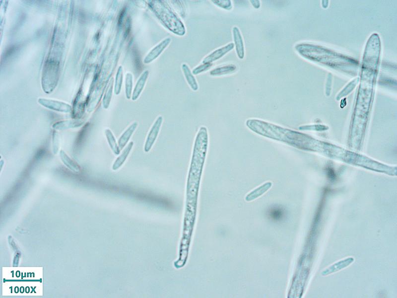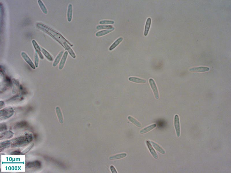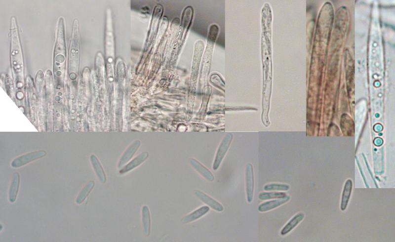 The paraphyses are 50-65 x 4.7-6, with one or two bigger and some smaller droplets, protruding some 15-25 µm.