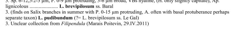 I compared to an L. pudibundum i found some weeks ago (on Prunus padus) and the main difference seems to be that the hairs are not capitate (with the exception of one hair) and the paraphyses are marginally more protruding. Is a host switch to Filipendula possible for L. pudibundum?