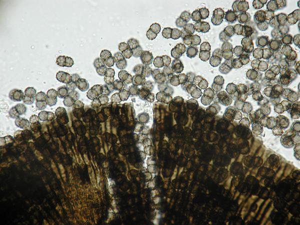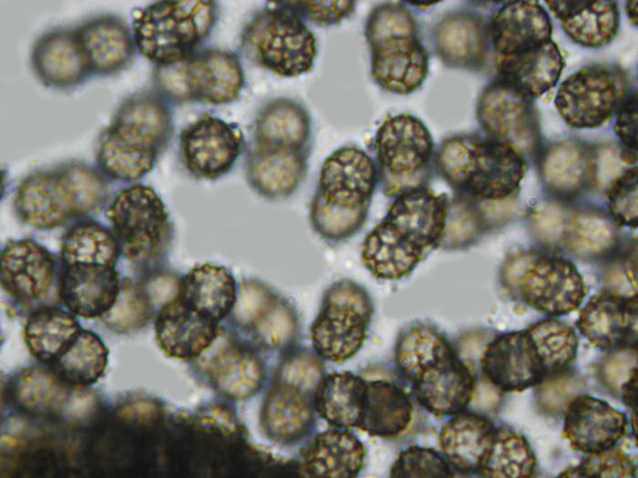 Merci Jacky, effectivement cela semble être la bonne piste, mais je ne trouve aucune espèce avec ces spores.