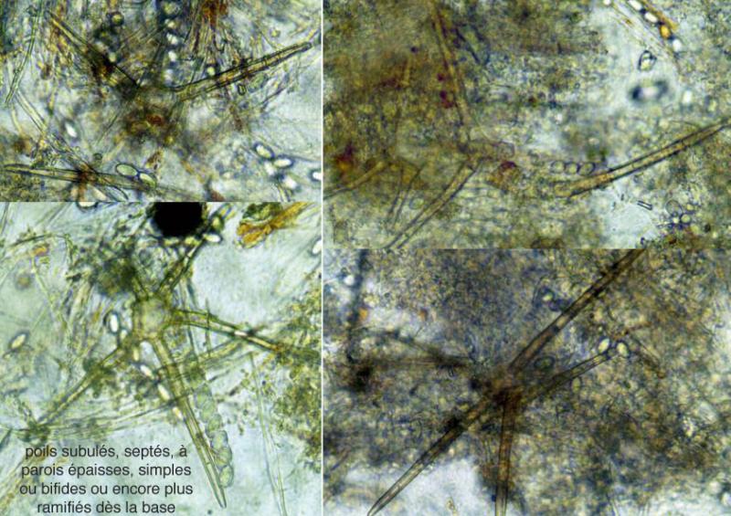 J'étais persuadé qu'il n'y avait pas de poils et je viens d'en trouver quelques-uns ! Poils simples ou bifides ou plus ramifiés encore dès la base !