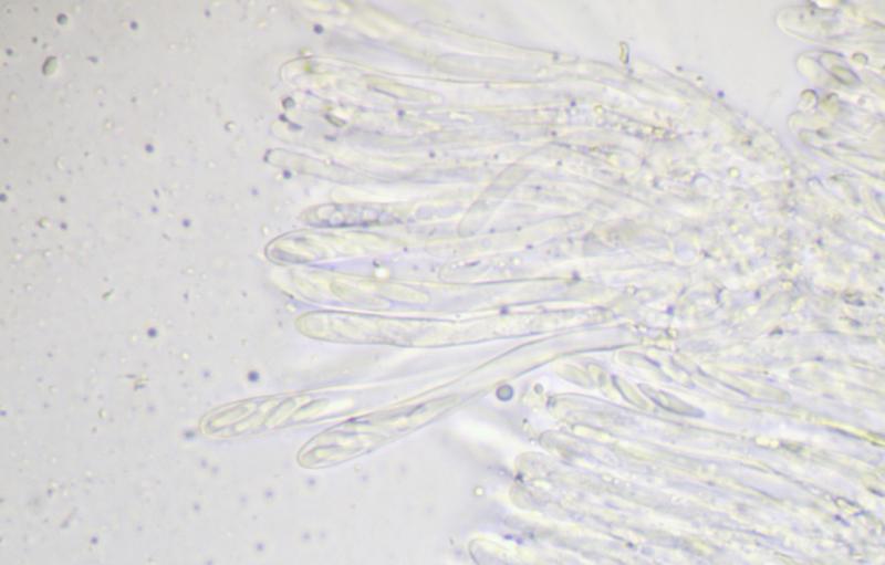 Ascospores : 5-6 x 1,5-1,7 µm, étroitement elliptiques à fusiformes, hyalines, sans goutte, lisses.