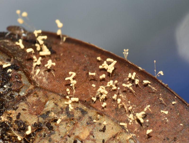 No tengo ni idea del tipo de hongo que es, no es un -ascomyceto, pero creo que aqui hay colegas que conocen de todo