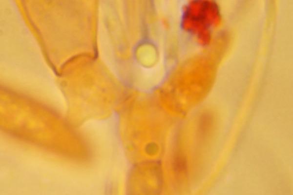 Only today I noticed the yellow apos from the sample I took with the aid of a stereo microscope, growing together with the Trichophaeas.