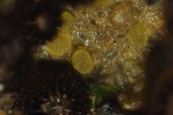 Tiny, yellow discos on soil