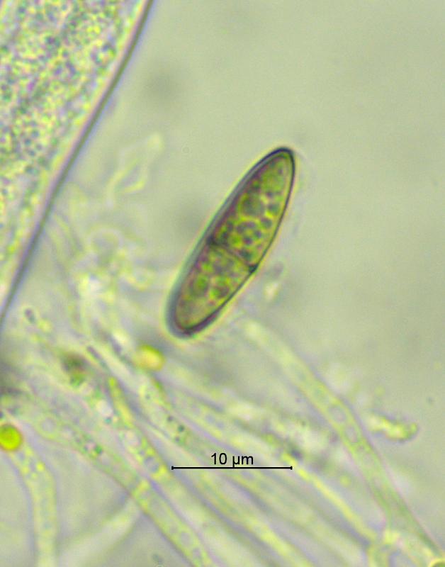 Interestingly, this site is less than 5 kilometres away from the first collection of Micropeziza filicina (see Ascomycete.org, 5 (4) : pp.129-136) but it is clearly not that - a very different substrate and larger ascospores - 13.9-15.7 x 4.6-5.2µm. I know that other Micropeziza spp. have been recorded on Ericaceae, but those were (as far as I am aware) on Rhododendron leaves.