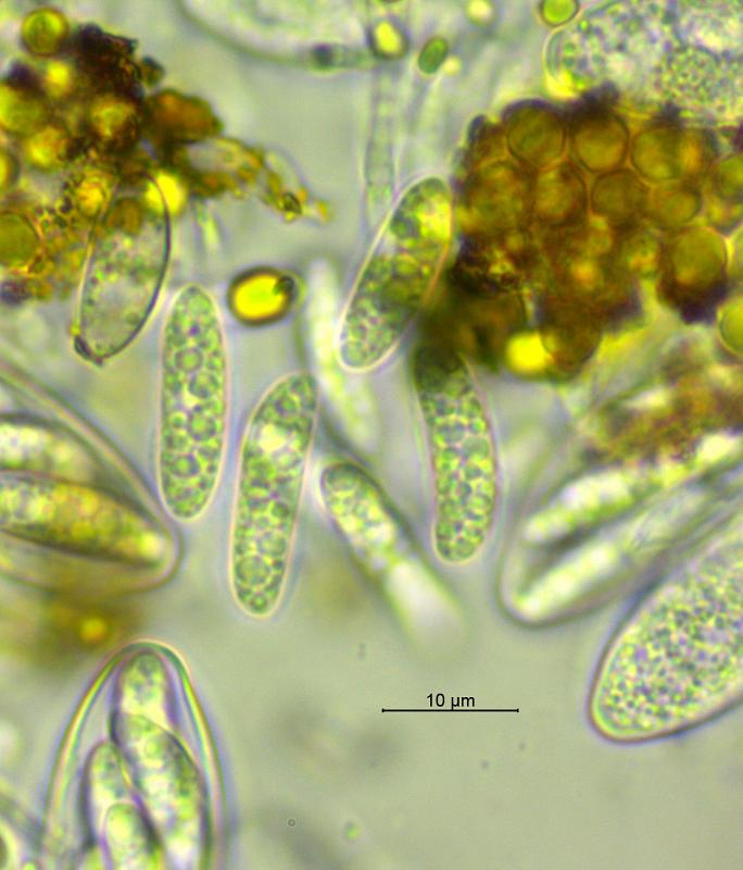 An interesting feature is that the freshly ejected ascospores have a sheath - clearly shown in the accompanying images. I'm fairly certain that this is a Micropeziza based on the encrusted excipulum, Calycina-type ascus apex (strongly blue in Baralsche Löhsung), and other features.