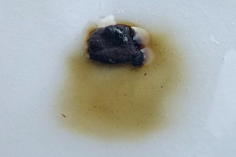 The KOH reaction is clearly olive. The photos show a slightly distorted color.