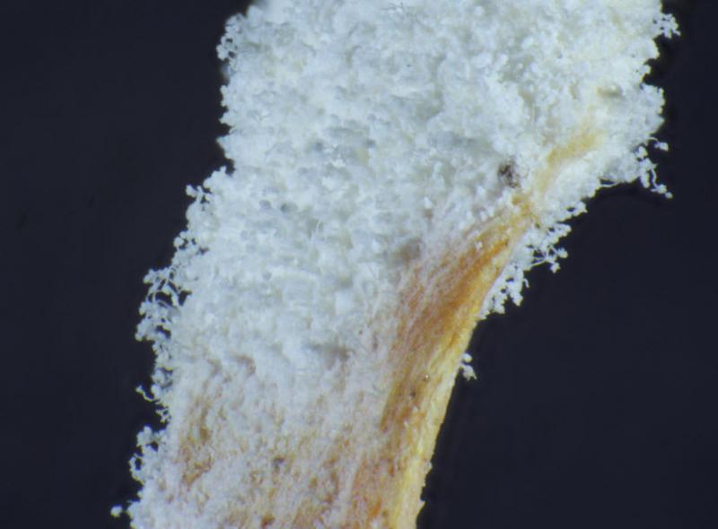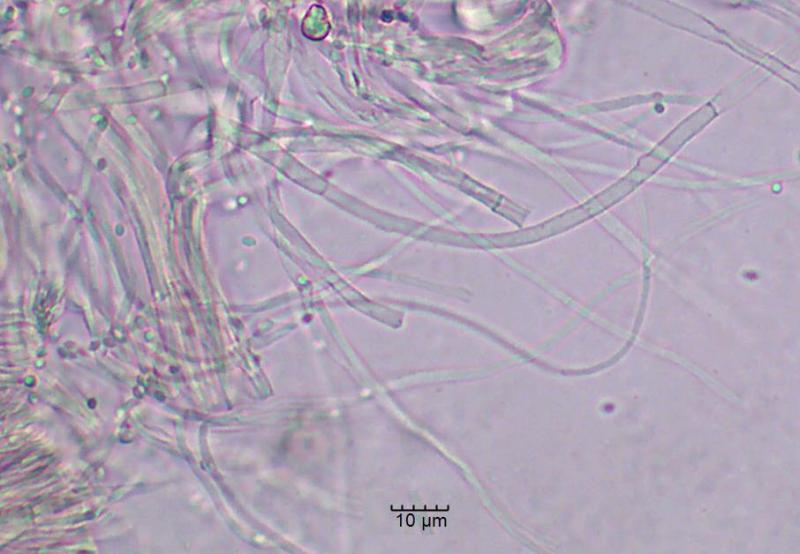 The tiny, about 2 µm small spores are developed by a Hyphomycete
