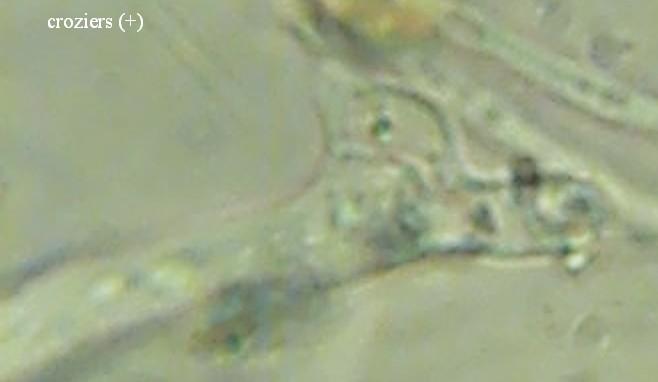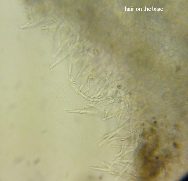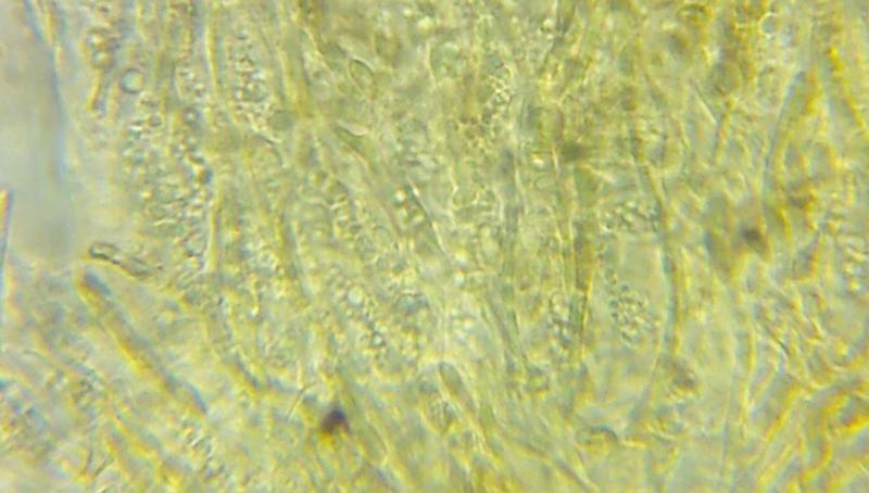 A few very young fruiting bodies grew on a pine cone. I found only one fruiting body with mature spores already present. Microscopic structure and substrate similar to H. lutescens. But I don't like the content of the spores.