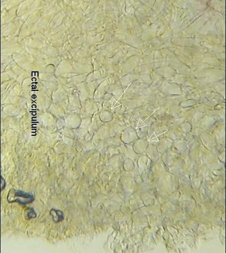I will not post photos of the new collection but I will try to explain what aroused my uncertainty. Watching H. epiphylus always saw in ectal ex. a narrow strip of cells of an oval shape. While examining these fruiting bodies, I didn't notice such cells, but probably due to the very young age of the fruiting bodies? Also, the dimensions of the spores are quite small for this species, but as I mentioned: the fruiting bodies are very poorly mature!