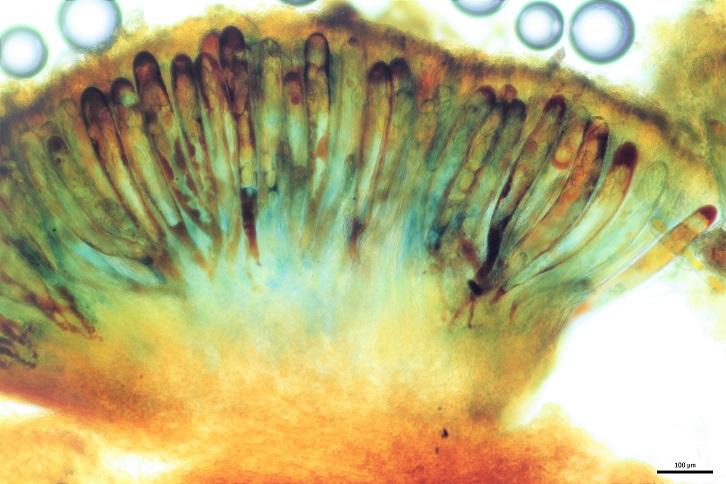 Si, tienes razón, muy probablemente esté cmuy cerca deT. Phycophilus, he leído atentamente el trabajo de Bronckers y consultado tu trabajo de la especie en Centro de estudios micológicos asturianos y veo una diferencia clara en el tamaño esporal con la especie que presento, sobre todo en el ancho, presentando en su mayoría las esporas con formas ampliamente elipsoidales, en mi caso ninguna de las treinta esporas que medí bajaron de las 19um de ancho y presentaron una media de 20,7um, tal vez debido al excesivo tiempo que estuvieron madurando en el frigorífico, tampoco he visto ascas con cuatro esporas, todas presentaban ocho, por lo demás cuadra bastante bien con la especie.