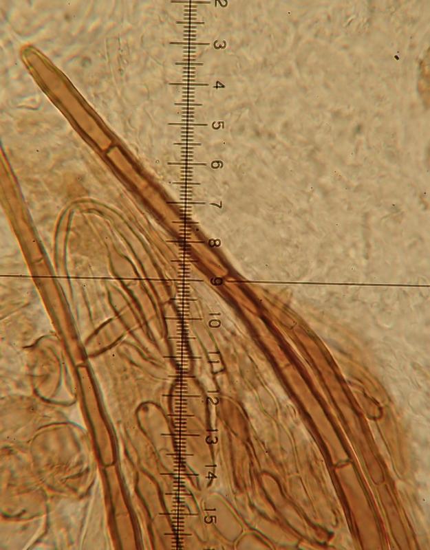 Je m'étais évidemment dirigé au départ vers le genre Paratrichophaea à cause notamment des spores sans guttules. Dans ma clé, il n'y avait que Paratrichophaea boudieri que je connais et qui n'est pas ma récolte : base des asques, dimensions sporales, etc. plein de choses qui ne vont pas. Je suis donc retourné vers le genre Trichophaeae.