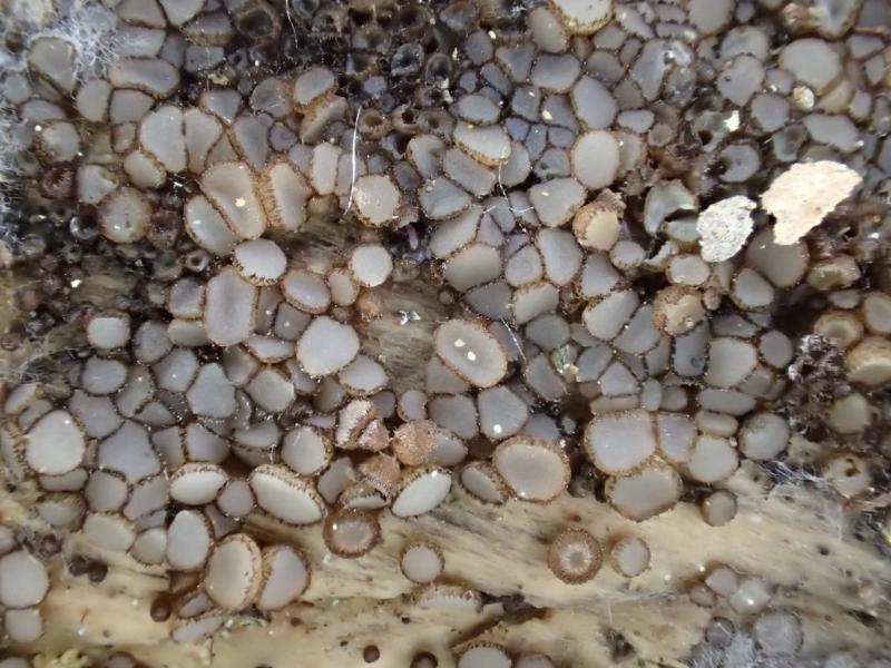 Ascomes de diamètre ne dépassant pas 2-3mm. Parfois isolés les uns des autres, parfois en groupes compacts.