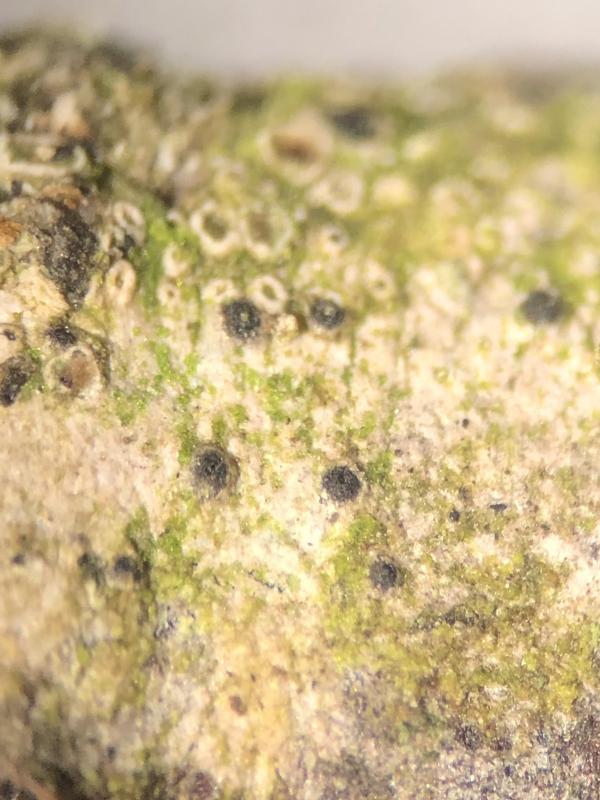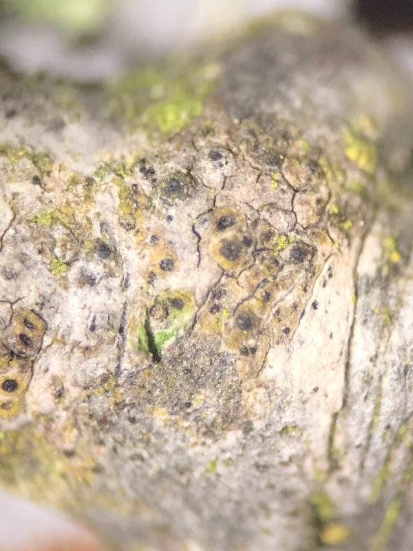 As you say we could exclude lichenicoles, I will ask Walter to se if it is the species you named but as it seams it is only pertecia one by one and no gregarious ascomata on a stroma but i will cut and look closer on material when i home.