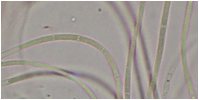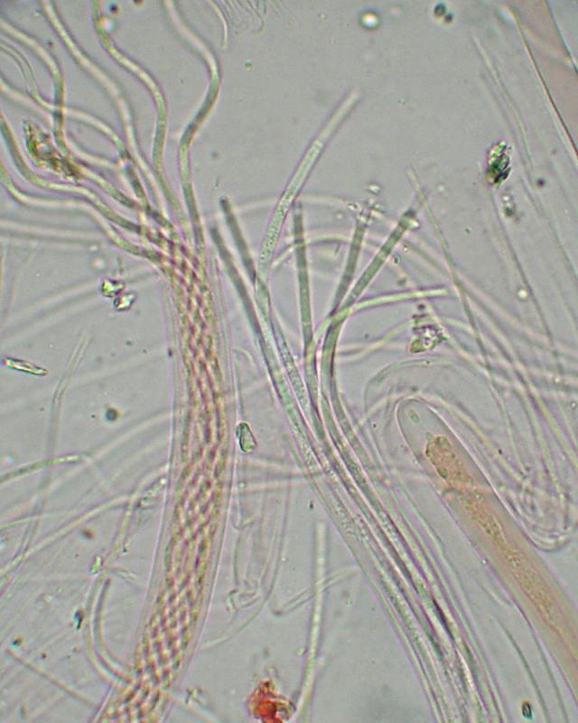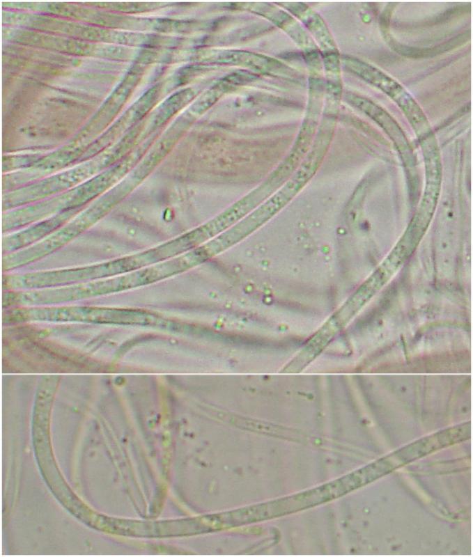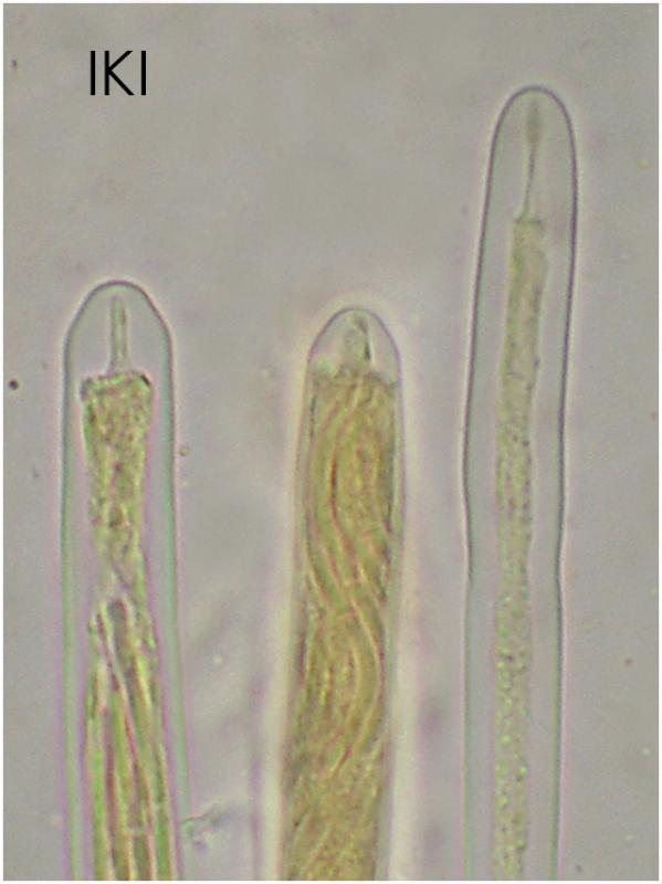 Microscópicamente llama la atención las ascas (y las esporas) tan largas que presenta, de hasta 1100um de longitud x 8-9.5um. Las esporas (x 1.6-1.9um) tienen muchos septos.