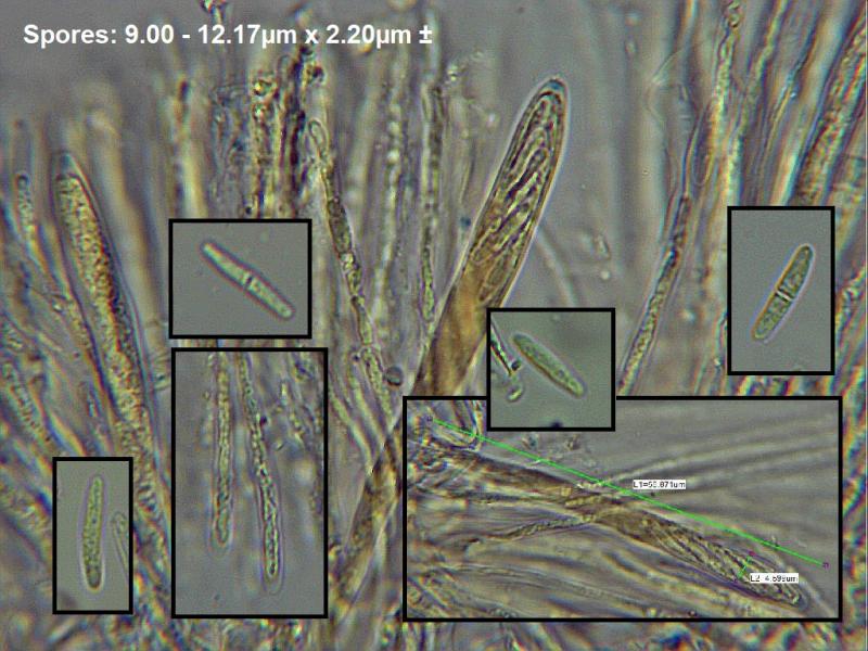 Not only because I live near the atlantic coast but after careful anaylsis of this record I noted the longer spores and 1-sepatate which pointed me towards M. atlantica. M. cinera and M. palustris which are more common and can appear macro wise similar. This was found on Corylus I think, under damp conditions also with Salix nearby. Narrow asci at 55 x 4.69 with tips bluing. Spores as stated on pictograph 9.0 - 12.17µm x 2.20µm. Rounded both ends rather than pointed.Apprecaite any advice in case this is something esle.