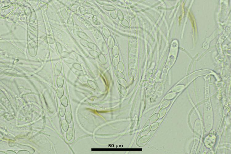 Spores 13.4 - 14.6 × 6.5 - 6.9 µm, asci 105 - 140 x 11.5 - 13.5 µm, tips of paraphyses 3 - 5 µm wide.