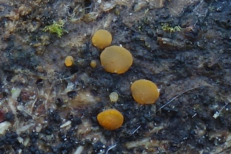 I found a paper called North American species of Coprotus where there's a description of it, and this seems like a good candidate! C. aurora apparently would be similar but e.g. have larger spores. Maybe I'll still re-examine the sample with more care. This might be an interesting collection. Thanks!
