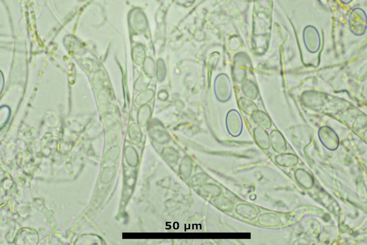 Spores 10.4 - 11 × 5.9 - 6.4 µm, asci 83-88 x 9 - 10 µm, paraphyses 3.5 - 5 µm wide.