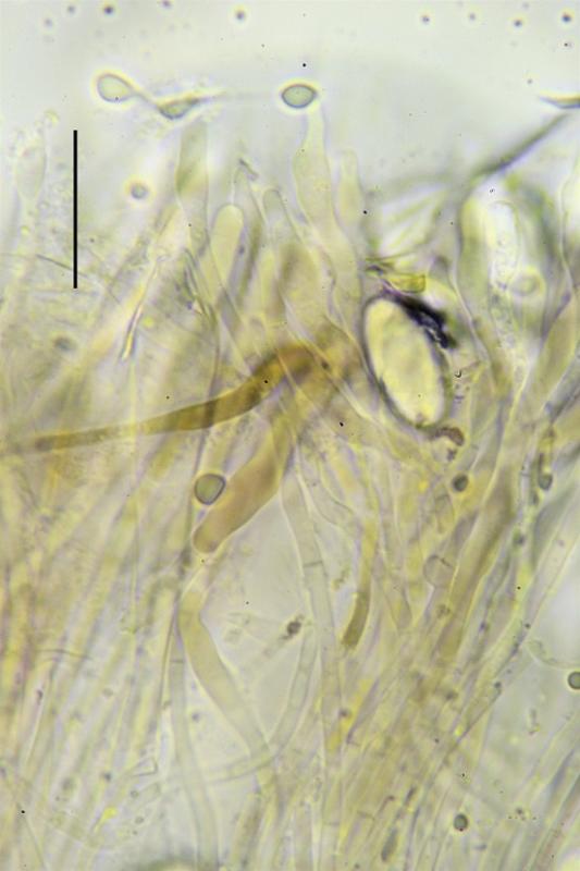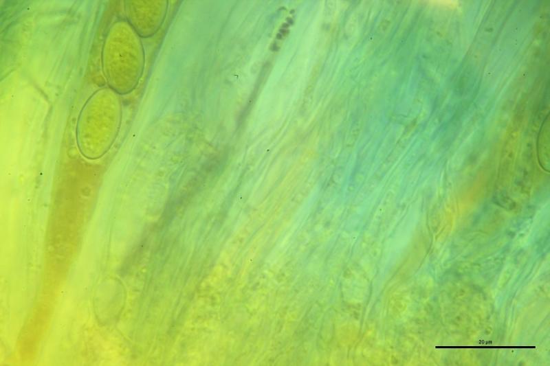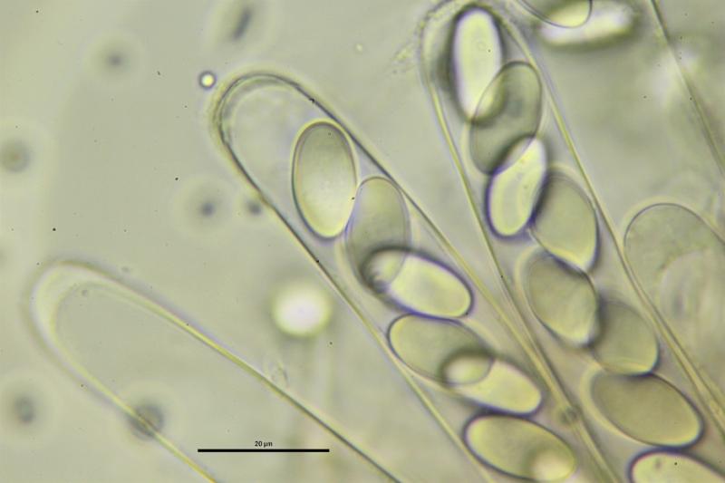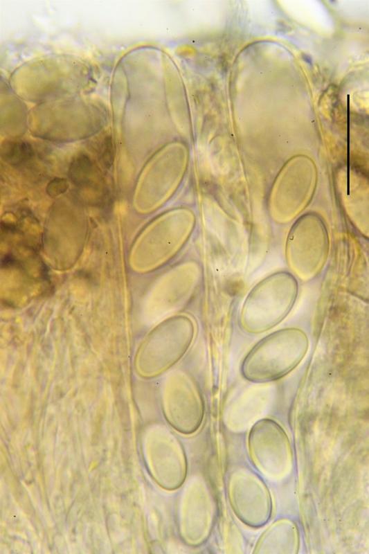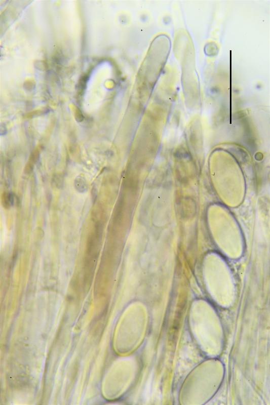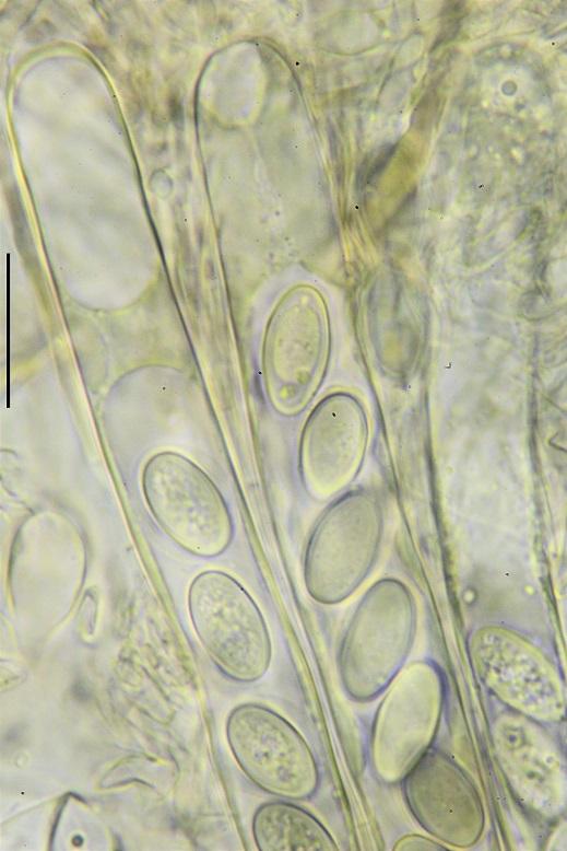 Tal vez T. rivicola pueda ser una buena opción, pero en este caso las esporas no han desarrollado el apículo característico de esta especie, también las paráfisis parecen diferentes, no se..... Alguien pueda ayudarme??