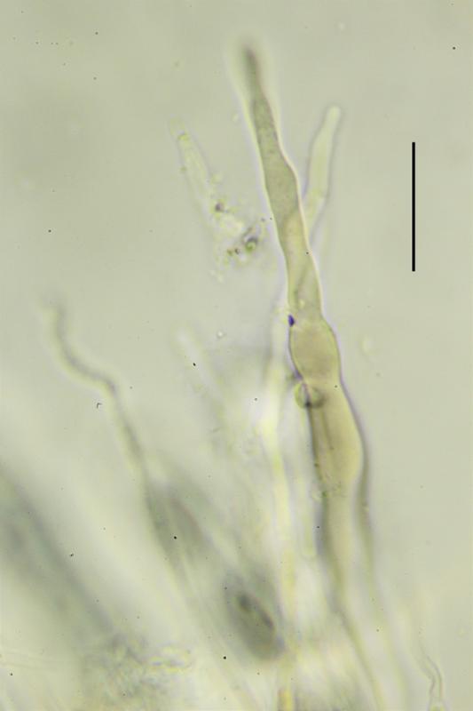 Paráfisis pigmentadas de marran claro, ensanchándose en el ápice, en ocasiones lanceoladas.