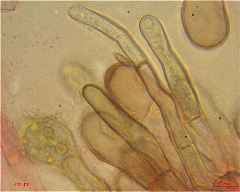 outside covered with tousled hair; sessile; first globose; opening splitted in irregular lobes; max 11mm (unfolded).