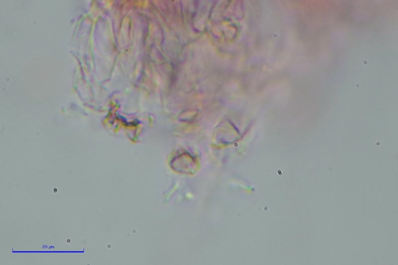 Apos max. 2 mm on average, very shortly stalked, whitish or light yellowish.