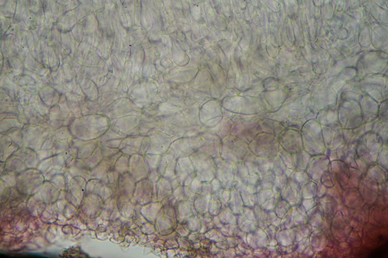 Medullary excipulum with text. intricata or prismatica(?), ectal excipulum text. globulosa-angularis. Some irregular crystals, if I'm not mistaken...(?)