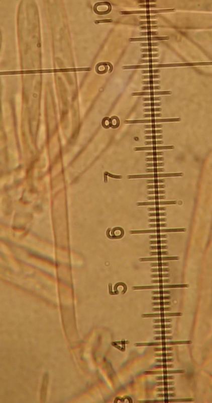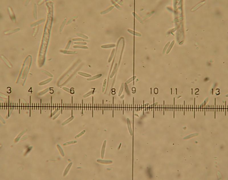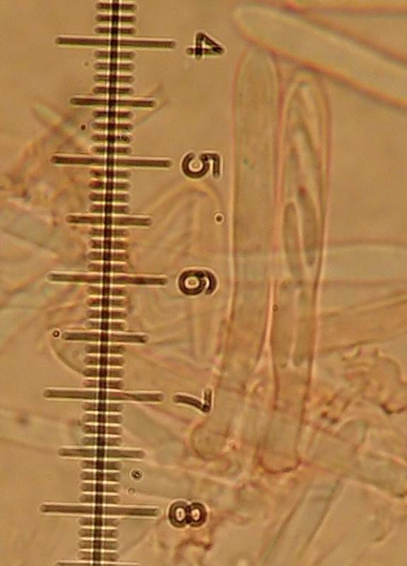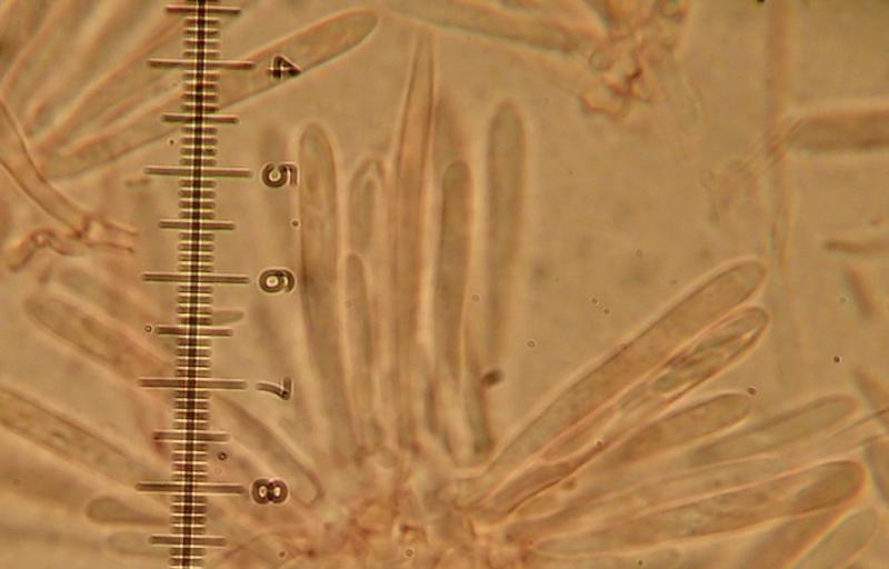 Spores 5,3-9,2 x 1,3-1,9 µm with Q=3-6,2 N=20.