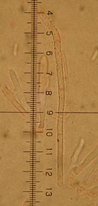 Yes, these hairs are very long indeed. The paraphyses look as if they hardly protrude beyond the asci. But thid id also the case in cf. carneolum from Serbia (21.VII.2018) with 70-80 µm long 3-septate hairs. I need to scan my old carneolum drawing for comparison.