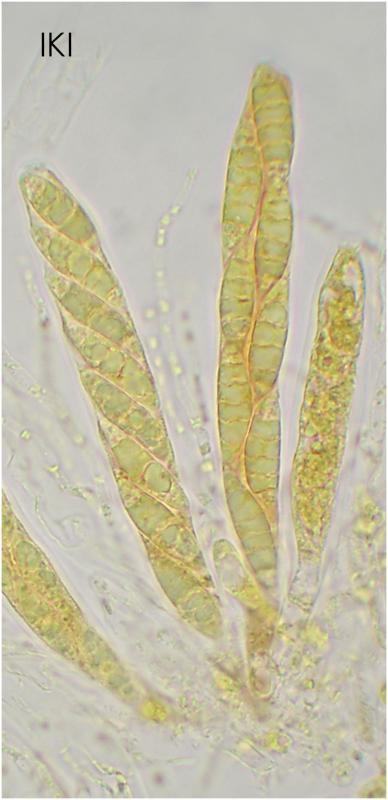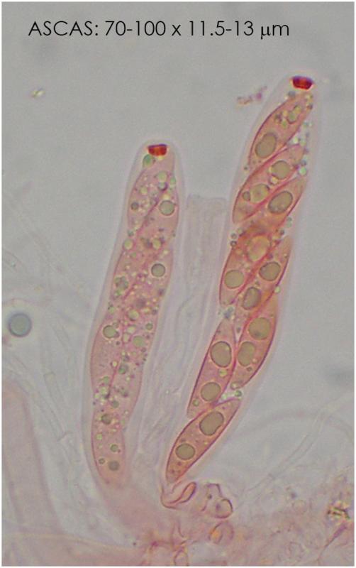 - Ascas octosporadas (70-100 x 11.5-13um), con aparato apical refringente IKI-.