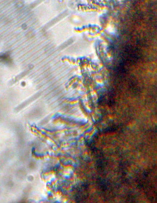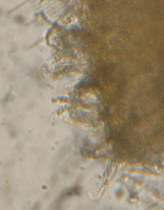 now I saw the hairs better and yes they may be glassy with a lumen at the base. There has been frosty nights here, so the condition of fruitbodies may not be the best.