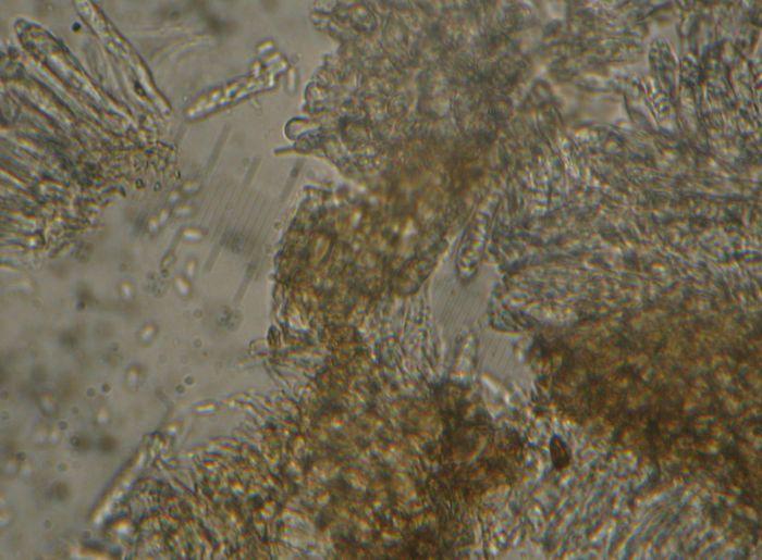 I found some not so colourful cell areas, but can not say anything sure of paraphyses. It has been moist here and then there is not so much need for paraphyses to protect asci.