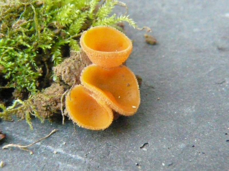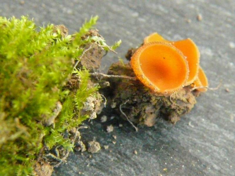 Espèce cupuliforme de 6 à 9mm de diametres de couleur orangée marge crenelée et extérieur blanchâtre .Stipe sans