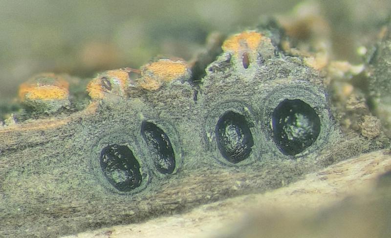 Une bien jolie espèce découverte sous la bino, poussant en compagnie de Cucubitaria sp. sur substrat indéterminé.
