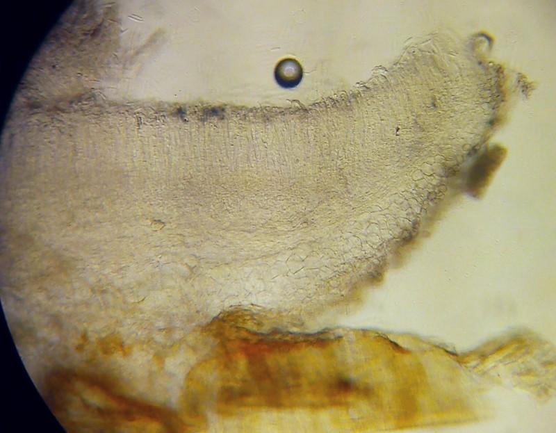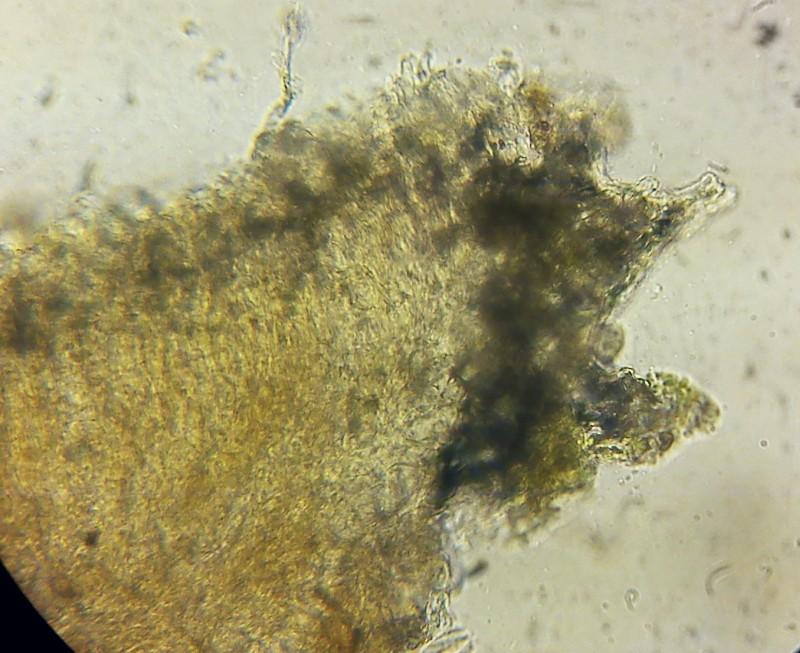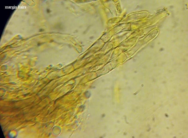 The fruiting bodies are small, up to 0.7-0.8 mm max. There were tufted hair on the edge of the fruiting body.