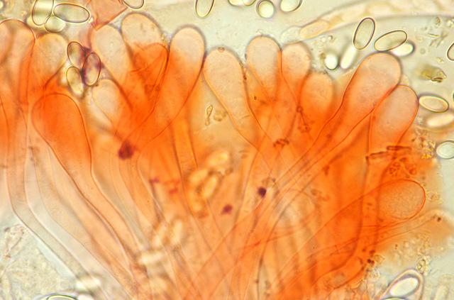 The excipulum is translucent the colour of the hymenium is yellow/white.
