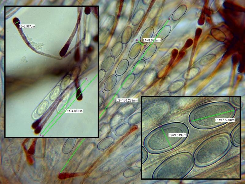 Paraphyses and cell structure measurements remained the same only the asci and spore sizes differ.